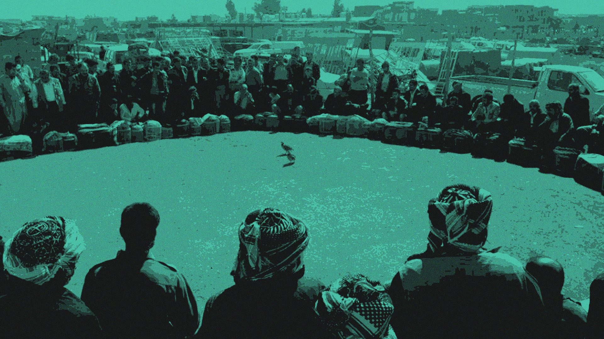 هذا مشهد من مشاهد حلبات صراع طيور الحجل، والتي تسمى “القبج” باللهجة العراقية و”كاو” باللغة الكردية.