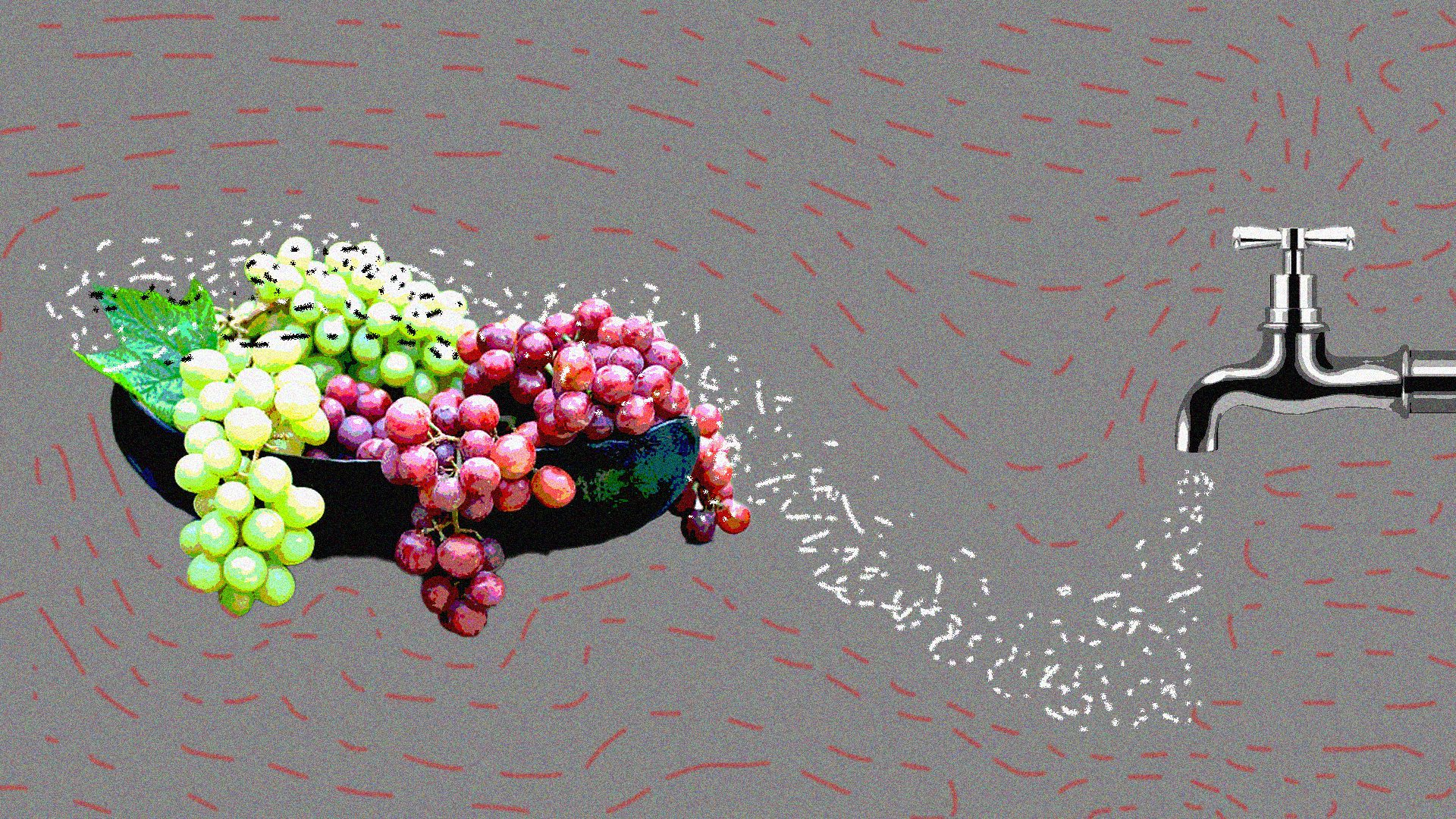 ألجأ عادة إلى أكل الفواكه التي لها قشرة، مثل الموز والبرتقال والرمان، لأنها بعيدة عن ماء الحنفية، لكن اليوم، أحضر والدي عنباً، ونسيت، في لحظة غفلة، ماء الحنفية.