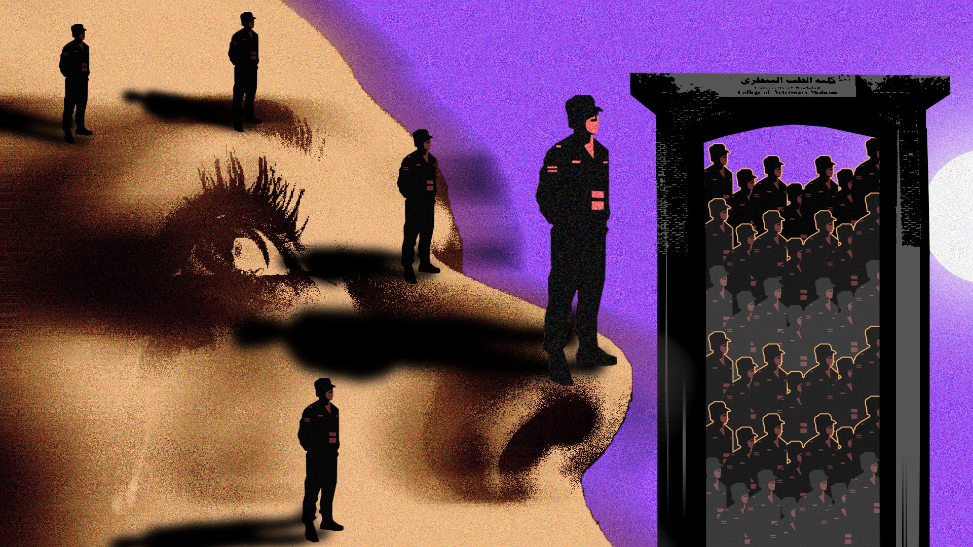Most university security guards are men; only a few women get security jobs in or outside universities. The guards are divided into three groups. In public universities, guards are affiliated with the Ministry of Interior and are positioned metres away from the gates and around the university buildings. They wear military uniforms and their job is to remove any external security threats.
